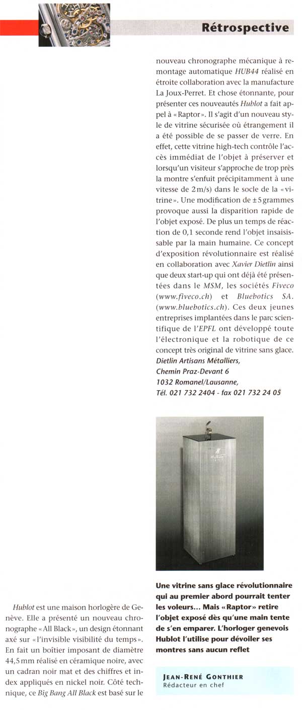 Les artisans de la nouvelle vitrine sans verre de Hublot se nomment FiveCo et Dietlin